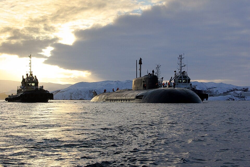 Photo: Russian nuclear submarine in the Arctic, via Wikimedia Commons.