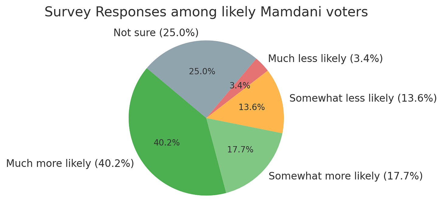 Photo: Mamdani voters are more likely to vote for him on the basis of his jihadist and antisemitic statements. Graph by RealityCheck based on data from American Pulse Research and Polling.